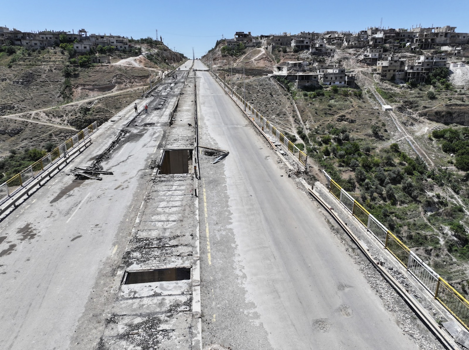 صور: توضح الأضرار التي لحقت لجسر الرستن بعد الغارات الجوية بتاريخ 05 كانون الأول 2025